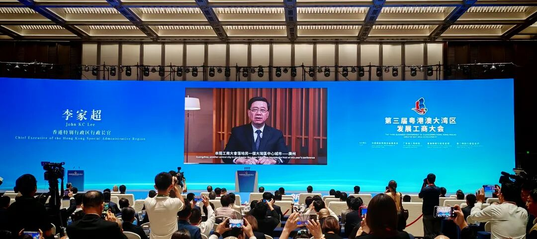 今日(9月15日),第三屆粵港澳大灣區發展工商大會開幕式在廣州召開。廣東省委書記黃坤明出席,全國政協副主席薑信治出席並講話,中國貿促會會長任鴻斌,廣東省省長王偉中,中國工商銀行行長劉珺出席並致辭,香港特別行政區行政長官李家超、澳門特別行政區行政長官岑浩輝發表視頻致辭,廣東省副省長張國智出席並主持開幕式。