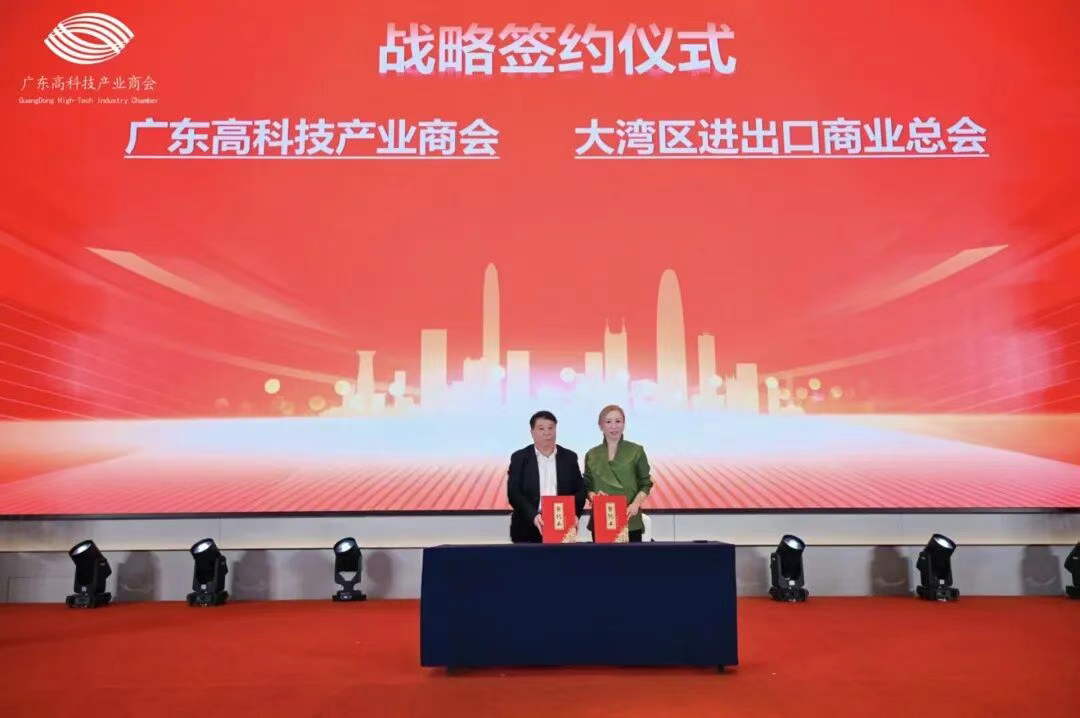 會議上,大灣區進出口商業總會與廣東高科技產業商會進行了戰略合作簽約儀式。兩大商會將攜手共進,建立緊密合作和協同發展長效機制,充分發揮行業引領作用,整合資源優勢,共同推動大灣區進出口貿易數位化升級和高科技產業全球化發展。