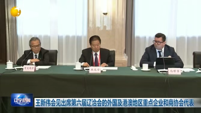 9 月 24 日下午,省委副書記、省長王新偉在瀋陽會見外國及港澳地區重點企業和商協會代表,大灣區進出口商業總會會長林龍安代表商會出席併發言。王新偉省長重點介紹遼寧全面振興新突破三年行動的歷史性進展,強調 “投資遼寧正當其時,大有可為”,希望大家以此次活動為契機,發掘新商機,拓展新合作。