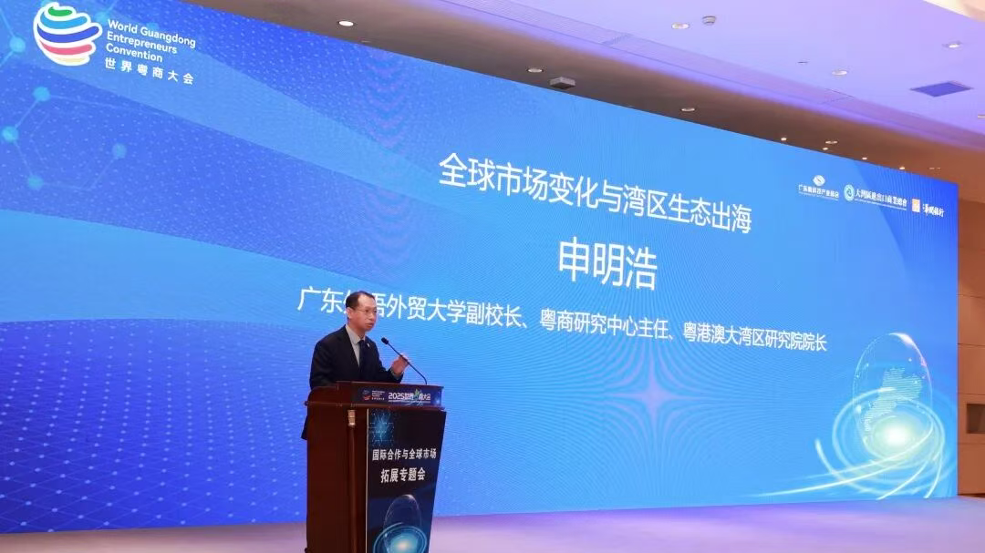 廣東外語外貿大學副校長申明浩以“全球市場變化與粵商國際化策略”為主題,運用豐富的數據和案例,分析了當前全球市場的格局和特點,為粵商制定國際化發展戰略提供了科學的理論依據和實踐指導。